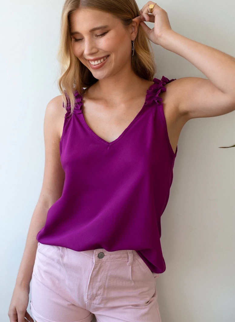 Εκπτωση 😉 The Fashion Project Τοπ με ελαστικά Frilled ραντάκια – Magenta ⌛