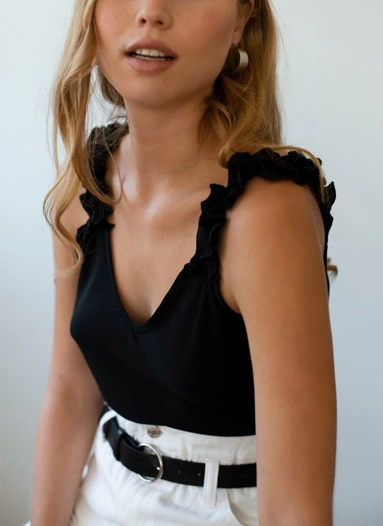Εκπτωση 🤩 The Fashion Project Τοπ με ελαστικά Frilled ραντάκια – Μαύρο 🔔